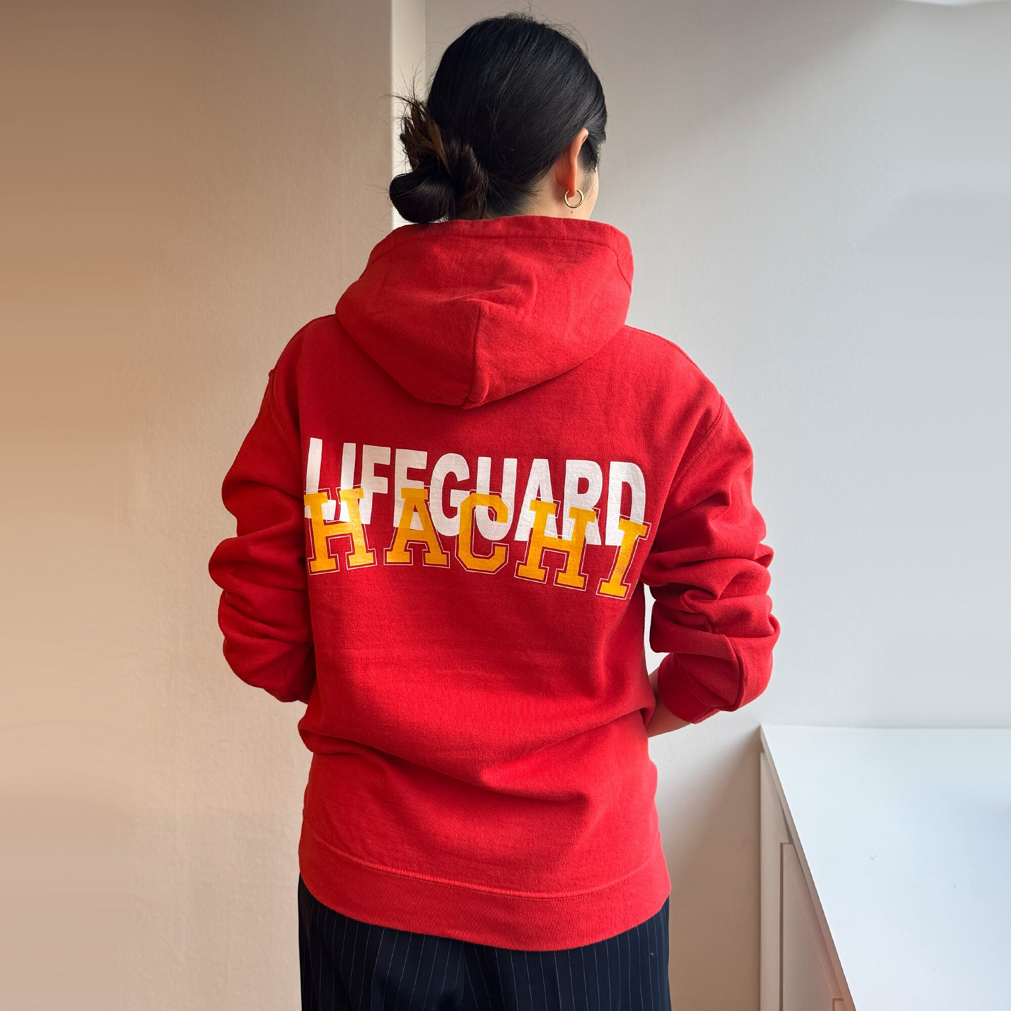 USED HOODIEにHACHI.オリジナルグラフィックをオーバープリントしました。