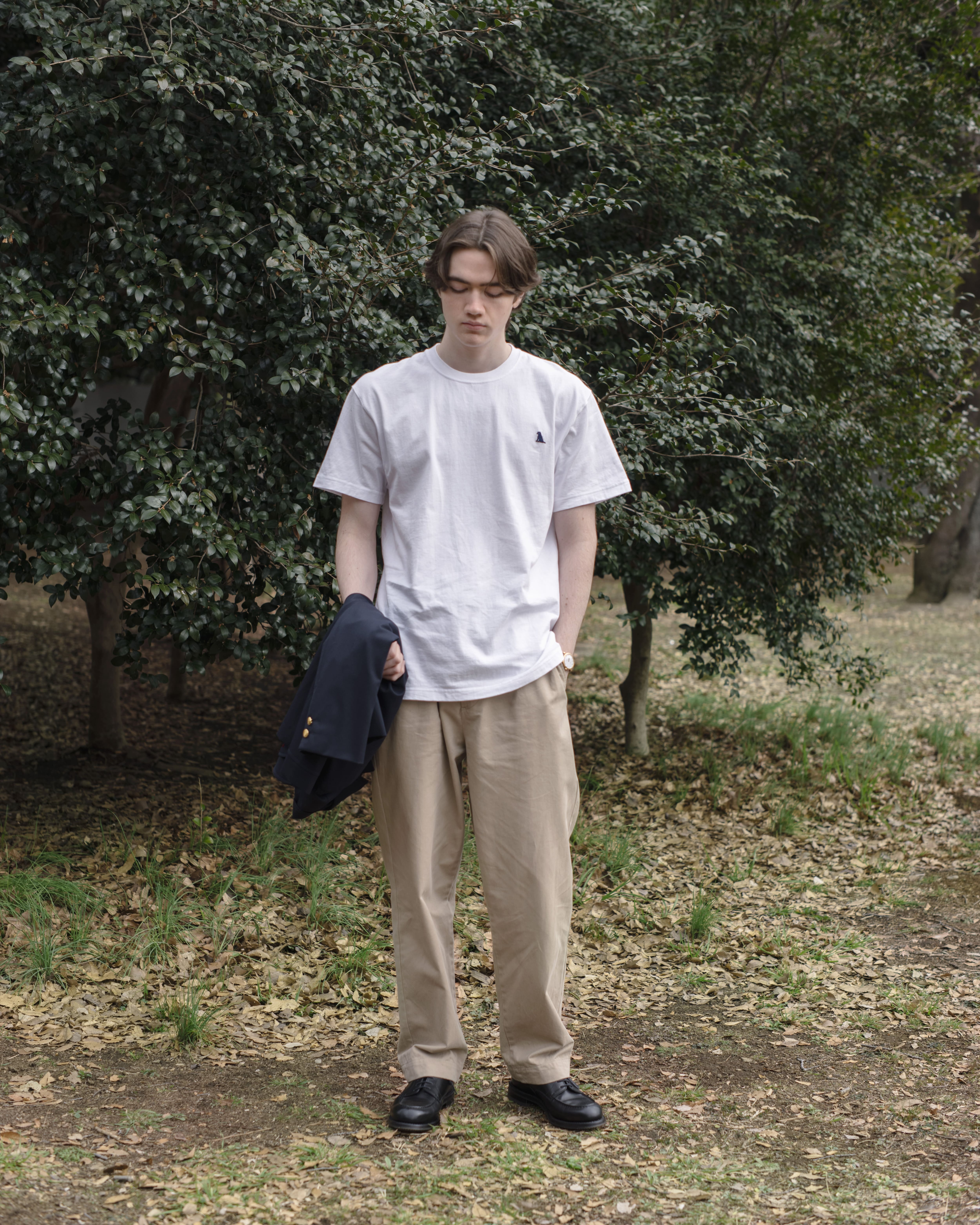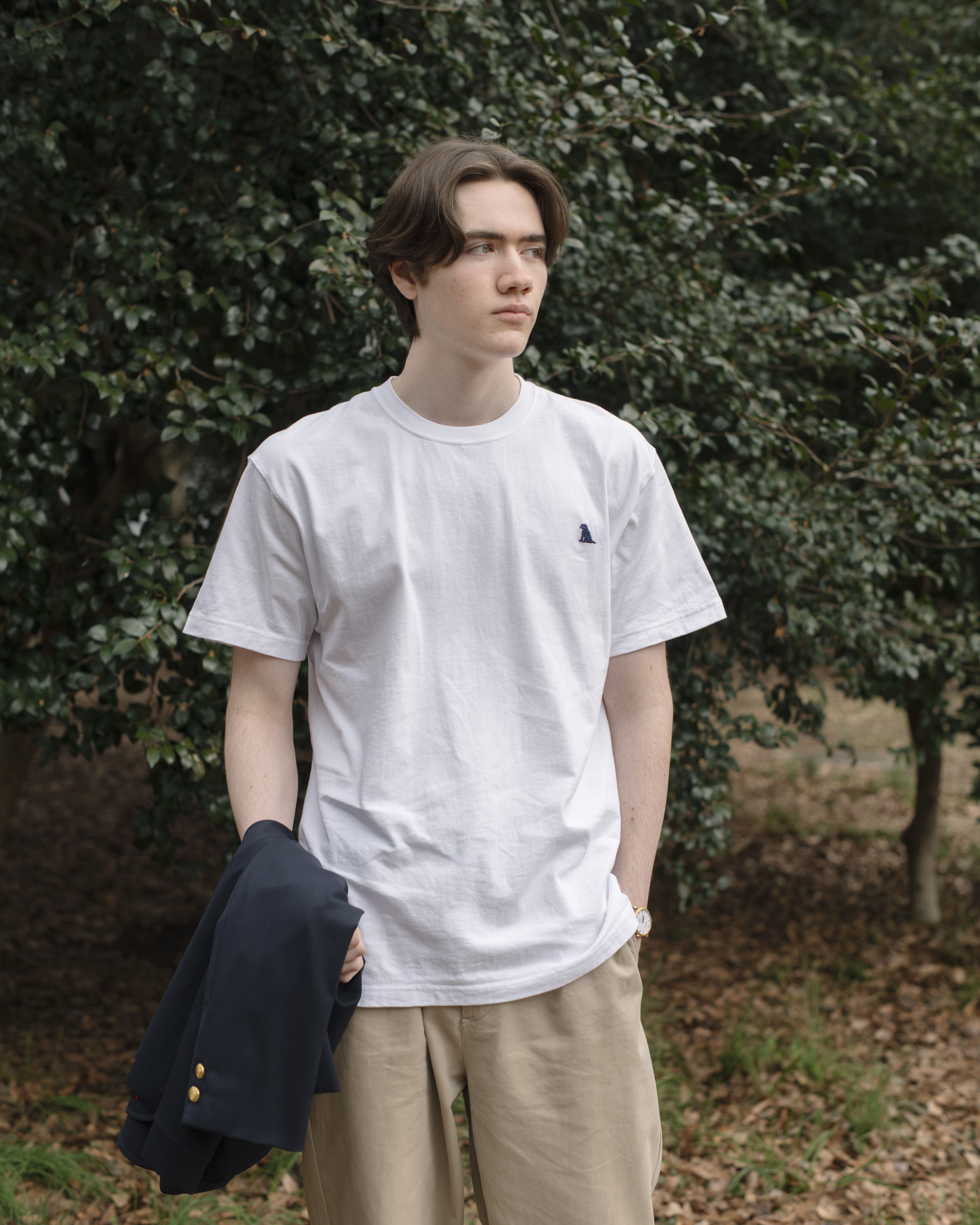 HACHI.オリジナルロゴを左胸に刺繍したシンプルな定番Tシャツです。7.1オンスの肉厚なオープンエンドのシャリ感のある素材を採用。脇に縫い目が無い仕様が特徴で、着心地にもこだわった着るほどに身体に馴染む1枚です。