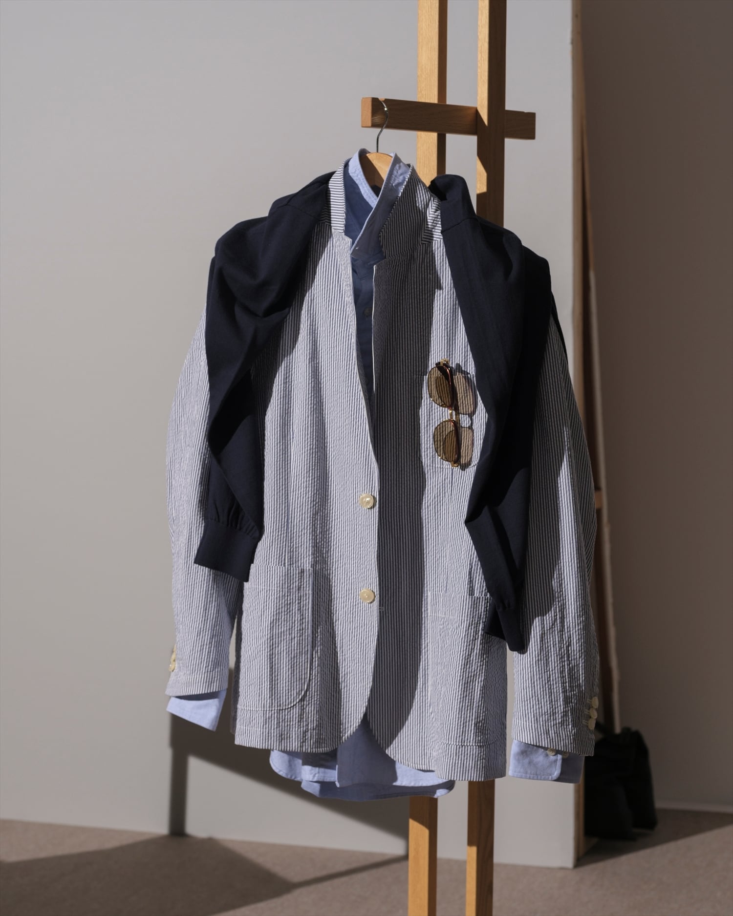 シャツとのレイヤードも楽しめる一着です。